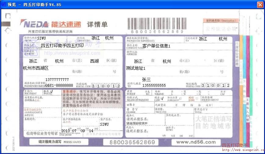 能达速递打印模板